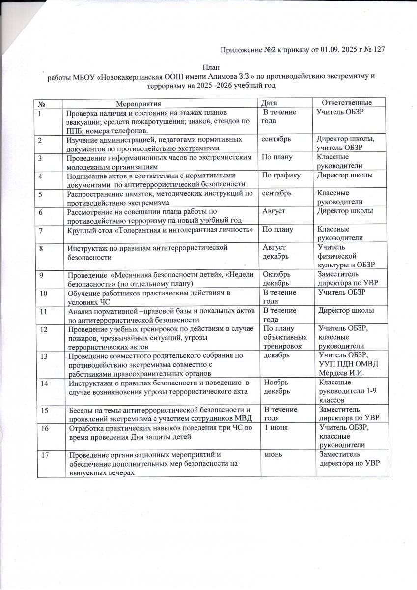 План мероприятий антитреррористической защищенности школы на 2025-2026 учебный год