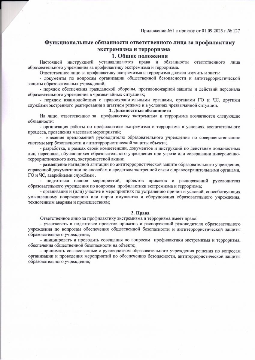 Функциональные обязанности ответственного лица за профилактику экстремизма и терроризма