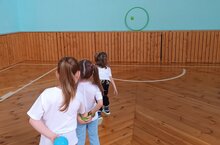 Участнику предоставляется право выполнить пять попыток. Засчитывается количество попаданий в площадь, ограниченную обручем.