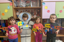 В России День космонавтики ежегодно отмечается 12 апреля. Именно в этот день в 1961 году произошло событие мирового масштаба: 27-летний советский военный летчик Юрий Гагарин совершил первый в истории человечества полет в космос. Воспитанники детского сада познакомились с основами астрономии, узнали о первом полёте человека в космос и о профессиях. Дети прослушали рассказы о планете Земля, звездах, Солнце и Луне. Особое внимание уделили подвигу Юрия Гагарина - первого космонавта. Дети вместе с воспитателем создавали аппликации и рисунки на космическую тематику: ракеты, планеты, звёзды.