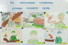 В рамках Месячника гражданско- патриотического воспитания в школе оформили выставку творческих работ (рисунков) на тему : Их именами названы улицы нашего села". Учащиеся приняли активное участие в создании работ, каждая из которых отражает уважение и благодарность к тем, кто защищал и продолжает защищать Родину.