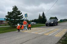 Повторили знак "Пешеходный переход" и практиковались переходить дорогу
