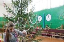 Сегодня в школе установили ёлку для праздника. Актив школы, а так же её учащиеся украшали ёлку различными украшениями. А также после уроков идёт репетиция номеров к праздику.