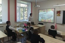 Обучающиеся начальных классов вспомнили об в открытиях и людях, которые их совершили. Затем «отправились в будущее» и придумывали интервью с героиней фильма «Гостья из будущего».