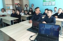 Учащиеся посмотрели видеопоздравление Владимира Путина с Днем знаний, послушали Дмитрия Пескова.