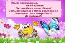 Вот он и настал последний день нашего пребывания в лагере. Мы этот день очень ждали, но почему – то когда он пришел, стало немного грустно. В этот день в принципе все было как обычно. Мы подготовили большой праздничный концерт, где в очередной раз показали свои таланты. На сцене выступали просто настоящие артисты, которые дарили зрителям положительные эмоции и хорошее настроение. Завершился наш день торжественной линейкой, на которой самые активные ребята и вожатые получили грамоты, медали, благодарственные письма и сувениры на память. Мы не говорим нашему лагерю «Улыбка»: «Прощай!», а говорим – «До свидания, до новых встреч!».