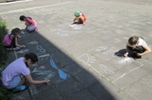 В пришкольном лагере прошел конкурс рисунков на асфальте.