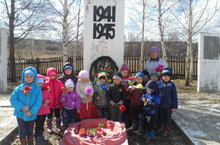 Балалар белән һәйкәл янына барып Җиңү бәйрәме турында сөйләштек.