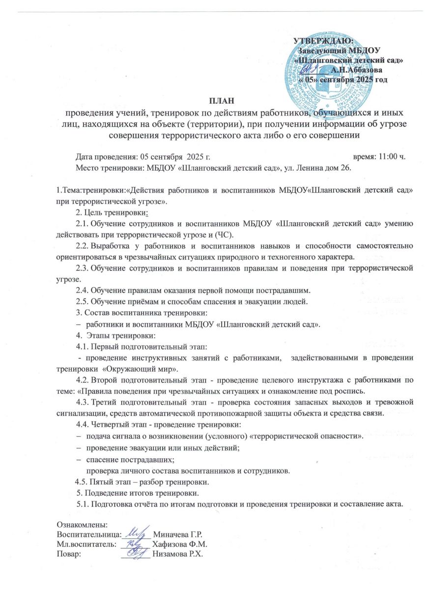 План мероприятий по предотвращению актов терроризма в МБДОУ и на его территории на 2024-2025 учебный год