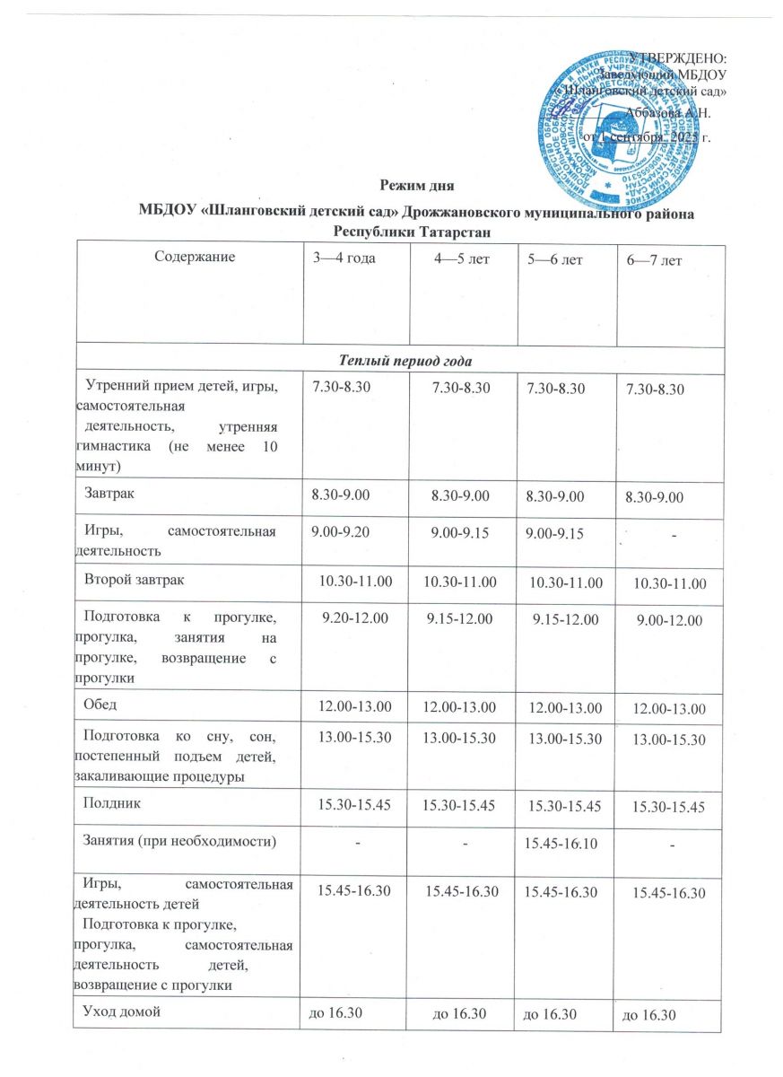 Режим дня на летний оздоровительный период на 2025-2026 год в МБДОУ "Шланговский детский сад"