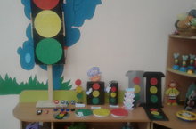 Цель: Дать знания о том, что когда загорается красный свет, переходить дорогу нельзя,а когда зеленый разрешается.