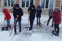 Этой зимой природа нам преподносит сюрпризы - снова выпал снег. И не просто снег, а много-много снега! Снег засыпал все дорожки и пути к школе, к памятнику погибшим воинам в годы ВОв. Поэтому и было решено провести трудовой десант по уборке снега. Старшеклассники вышли на очистку от снега территории школы. Работали дружно, слаженно, с улыбкой. В борьбе со снегом принимали участие и волонтеры школы. Ребята на время перемены поменяли шариковые ручки на лопаты. Дружной компанией очищать от снега школьный двор оказалось намного интереснее. На площадке перед входом в школу теперь чисто!