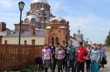 Воспитанники пришкольного лагеря «Солнышко» из отряда «Тропинка православия» (победитель конкурса «Православная инициатива 2013-2014 г.) посетили Остров – Град Свияжск и Раифский монастырь. (Под руководством воспитателей Куракиной Н.Н. и Сердцевой Е.В.)На острове дети смогли ознакомиться с памятниками архитектуры 16-17 века, почувствовать атмосферу средних веков. Экскурсовод Павел показал ребятам старинные фрески в реставрируемом храме, также мы побывали в одном из самых старинных деревянных храмов в России сохранившимся на острове Свияжске. Ребята с интересом посетили музей острова, где им на интерактивной карте продемонстрировали происхождение острова, его историю. Все желающие смогли купить сувениры, поделки, а так же попробовать себя в старинных ремеслах.В Раифском монастыре, не было ощущения старины, но было величие красивых храмов с золотыми куполами. Ребята восхищались красотой и убранством храмов, росписью. Прекрасные цветники украшают монастырский двор, все цветет и радует глаз. Все смогли попить воды из святого источника, а так же взять её с собой на дорогу. Наше путешествие было организовано при поддержке Отдела образования. Детей в пути сопровождала фельдшер ФАПа Трофимова Г. Поездка понравилась всем без исключения. Мы благодарим всех, кто помог нам в её организации!