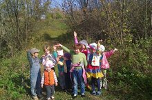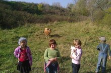 Ознокомление с окружающим. Сегодня мы ходили на экскурсию, наблюдали за желтеющими деревьями, за поведением птиц. И случайно увидели очень добрую корову, добрую потому что рядом с коровой лежал маленький котенок,он тоже оказался очень добродушно настроен, что даже дал ребятам себя погладить.