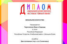 Воспитанница нашего детского сада, Череповская Надежда (6 лет), стала участницей международного детского фестиваля " Южный полюс" в номинации вокал.