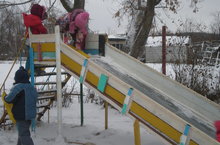 зима. Столько радости было у детей, когда они смогли покататься с горки на ледянках.