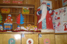 Нарядно окрашенная прихожая работами и письмами детей Деду Морозу встречает воспитанников и родителей в детском саду.