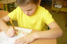 У нас совсем как в школе.Тиздән Артем балалар бакчасы белән саубуллаша. Бакчада ул язарга,санарга йөрәнде.
