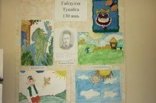 Габдулла Тукайның тууына 130 еллыгына багышлап 3 сыйныф укучылары белән аның әсәрләренә рәсем конкурсы оештырдык.Шул рәсемнәрне кулланып үзебезнең кечкенә күргәзмәбезне дә оештырдык.Һәр укучы үзенең көченнән килгәнчә рәсем төшерде, буяды. Күргәзмә укучыларга бик ошады.