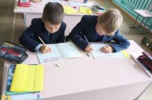 Для формирования красивого почерка учащиеся первого класса пишут в тетрадях в широкую косую линию. Для правильного нажима используются механические карандаши. Ребятам очень нравятся минутки каллиграфии