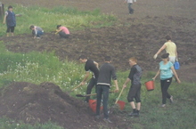 26 мая на пришкольном участке посадили белокочанную капусту. После обеда пошел первый в этом году теплый летний дождик, прогремел первый гром. Значит, год будет урожайным!