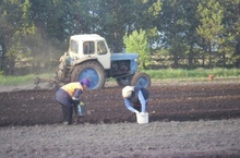 Наша большая дружная школьная семья 20.05 посадила картофель на школьном огороде.