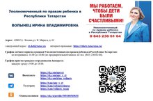 Уполномоченный по правам ребенка в Республике Татарстан - Волынец Ирина Владимировна - 88432366164