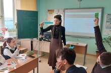 Студентка КФУ Диана Ришатовна провела урок информатики в 7-8 классах.