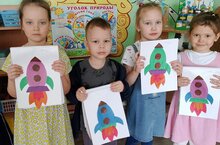 В детском саду N12 "Солнышко" прошел тематический день, посвящённый Дню космонавтики. Воспитанники групп познакомились с информацией о первом полете человека в космос и о космосе вообще. Также они сделали аппликации для выставок в раздевалках групп.