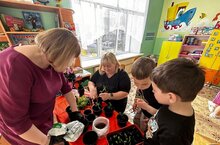 Зурлар һәм мәктәпкә әзерлек төркемнәрендә тәрбияләнүчеләр тәрәзә төбендә үсентеләр үстерергә булышалар. Помидор, борыч һәм төрле чәчәк үсентеләрен май аенда бакчада түтәлләргә, клумбаларга утырту өчен әзерлиләр.