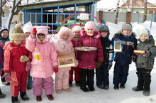 Кечкенәләр төркеме тәрбиячеләр белән берлектә кошларга җимлекләр элделәр. Балалар бик тэләп күзәттеләр. Шул ук вакытта алар кыш көне кошларга ярдәм итәргә кирәклеге турында мәгълүмат та алдылар. Балалар кышлаучы кошларга ярдәм оештыруда бик теләп катнаштылар.