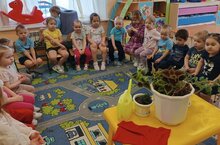 Бүген кече төркемдә балалар арасында табигать белән танышу буенча "Бүлмәле үсемлекләрне карау" дигән темага дәрес үткәрелде. Бу дәрес балаларның бүлмә үсемлекләре турындагы күзаллауларын киңәйтүгә юнәлдерелгән. Балалар үсемлекнең нинди өлешләрдән торуын искә төшерделәр, аларны ничек тәрбияләргә кирәклеген, су сибеп юеш чүпрәк белән сөртүләрен әйттеләр. Үсемлекнең тере булуын, аның үсүен, туклануын һәм аңа уңайлы үсү өчен яктылык һәм җылылык кирәклеген белдек.