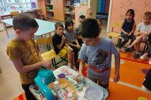 В нашем детском саду в рамках часа науки воспитанники подготовительной группы «Пчёлки» провели экспериментирование «Цветной дождь». Этот красочный эксперимент хорошо показывает плотность разных веществ. Вода обладает большей плотностью, чем масло, поэтому она внизу. Игра - лучший способ познания окружающего мира! Играйте с детьми в Науку, это очень интересно и одновременно просто!