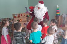 Дед Мороз меня просил, вас на елку пригласить.В первые, участвовали дети ясельной группы №1. Ребята с улыбкой на лице встретили снегурочку. Увидели у новогодней елочки зеленые иголочки, Снизу до верхушки красивые игрушки, Шарики, фонарики, бусы, и снежинки и конечно е олучили сладкие подарочки от Деда Мороза