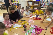 Воспитанники с удовольствием вместе с мамами занимались на мастер-классе по изготовлению декорации к театральной постановке