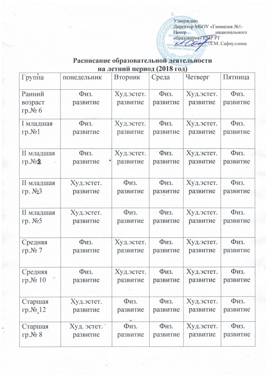 Режим дня дошкольных групп в ЛОП, 2018 г.