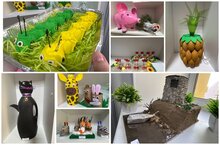 Экокоманда детского сада вместе с родителями и педагогами организовала в холле детского сада выставку поделок из вторсырья "Калейдоскоп экологического вдохновения". Из вещей, которые обычно, после их использования привыкли выкидывать, создали, поделки, игрушки и даже предметы интерьера. Самой знаменательной стала поделка, которая является визитной карточкой нашего города "Чертово городище.