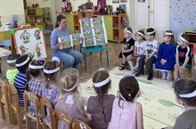 Бүген, экологик белемнәр көнендә, кечкенәләр төркеме тәрбияләнүчеләре Эколяталар белән берлектә табигатьтә үз-үзеңне тоту кагыйдәләрен искә төшерделәр. Шулай ук язның беренче чәчәкләренең берсе - үги ана яфрагы үсемлеге белән дә таныштылар.