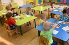 Одним из чудесных явлений осени является листопад. Малыши из группы №2 наблюдали на прогулке, как осенние листья красиво и плавно кружась, падали на землю. Вернувшись в группу, они решили отразить свои впечатления на бумаге. Вместе с воспитателем дети наносили краску на мокрую бумагу, и видели интересный для них эффект - краска сама расплывается по бумаге! Получились яркие, красивые замечательные рисунки. Малыши считают, что их рисунки очень похожи на осенние листья. И мы с ними согласны)