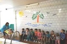 Инструктором по плаванию в бассейн были приглашены детки младшей группы. Они познакомились с правилами поведения в бассейне. Ребятки в восторге и с нетерпением ждут первого занятия!