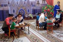 В настоящее время родители всё больше и больше интересуются жизнью своего малыша и детского сада в целом, но обо всём за 2 минуты и не расскажешь, ведь каждый день для ребёнка очень много значит! Сегодня воспитатели групп раннего возраста показали родителям воспитанников, как течёт жизнь в стенах нашего детского сада в обычный будний день. Подробнее остановились на таких основных моментах в режиме дня ребенка, как: утренняя гимнастика, свободная игровая деятельность, организованная образовательная деятельность, прогулка, оздоровительные процедуры и т.д. Мероприятие прошло в игровой форме, где детьми были сами родители: мамы и папы. Они с удовольствием делали зарядку с воспитателями, ели кашу, повторяли пальчиковые гимнастики и потешки, а также изучали шар и кубик. Особенно понравились родителям оздоровительные процедуры: хождение по корригирующим дорожкам и гимнастика после сна. После посвящения все мамы и папы выразили благодарность воспитателям за их труд и старания. Хәзерге балалар бакчаларында нәни яшьтәге балалар белән нинди эш алып барыла соң? Шушы сорауга җавапны бүген әти- әниләр тапты. Бакчага килеп кергәч, һәр кешенең никтер бала буласы килеп китәдер. Менә шуңа күрә бүген әти- әниләр “бала” ролендә уйнадылар. Алар көн тәртибе буенча иртәнге зарядкадан башлап өйгә кайту вакытына кадәр төрле - төрле эшлэр башкардылар. Шушындый формада чараүткәрү- бик кызыклы да, уйландыргыч та. Чөнки тәрбияче апаларының җаваплы һәм катлаулы эше бик яхшы күзәтелә. Чара әти - әниләр тарафыннан әйтелгән рәхмәт сүзе белән тәмамланды.