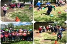 Бүген балалар бакчасының спорт мәйданчыгында урта һәм өлкән яшьтәге балалар өчен «туп бәйрәме»дигән физкультура чарасы узды. Балалар «Йомры икмәк», «Карбыз», «пингвиннар», «Еланкай» эстафеталарында катнаштылар, тупны ике кул белән тотарга өйрәнделәр, шулай ук табышмакларга җаваплар бирделәр, рус халык әкиятләренең исемнәрен искә төшерделәр, яшелчә һәм җиләк-җимеш исемнәрен ныгыттылар, урманда саклый ала торган куркынычларны санап чыктылар һәм алардан уңышлы чыгу юлларын тәкъдим иттеләр.
