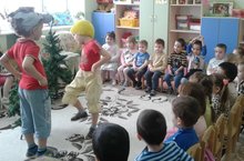 Сегодня дети подготовительной группы №8 показывали детям сказку «Колобок». Малыши восторженно восприняли приход артистов, внимательно, с большим интересом смотрели сказку. Все остались довольны: и зрители и артисты. Малыши попросили показать в очередной раз спектакль «Три поросёнка». Началась активная подготовка к следующему представлению.