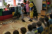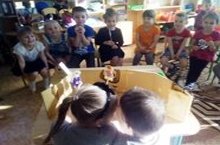 Театральная деятельность всегда была очень интересна детям. Дети могут проживать роль почти по-настоящему: скрыться за маской или кукольным героем постановки.Вот и в нашем саду дети с удовольствием играют в театр: настольный и кукольный, пальчиковый и театр масок, теневой и другие. Пробуют себя в самых разных ролях, испытывая при этом разные эмоции. Для создания атмосферы театра в группах созданы театральные уголки, силами родителей и педагогов изготавливаются ширмы, шьются костюмы и атрибуты к постановкам. Дети наслаждаются театральной атмосферой праздника в течение всего дня пребывания в детском саду.