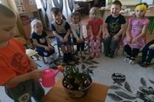 В весеннее время, когда у детей наступает дефицит витаминов, мы с ребятами в группе №7 выращиваем зелёный лук. Дети с удовольствием принимали участие в посадке лука, а теперь с интересом наблюдают за тем, как он растет. Хотя наши дети еще маленькие, но ухаживать за луком они умеют. Следят за тем, когда нужно полить, если земля сухая. Детям очень нравится ухаживать за растениями.