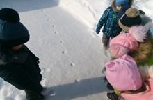Один из прекрасных способов занять и увлечь детей на прогулке – предложить им понаблюдать за следами птиц и животных. Ребята с удовольствием принимаются за это занятие; развивая внимательность, сообразительность, образное мышление, фантазию. И, разумеется, учатся делать выводы и умозаключения на основе того, что видят. Ребята из средней группы №7 рассмотрели следы кошки на участке, а затем с интересом принялись исследовать следы друг друга, изучая узоры на подошве.