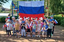 Бу бәйрәмне тәрбиячеләр балалар белән саф һавада,мәйданчыкта оештырдылар.Балалар өчен "Мин Россиядә яшим"исемле уен программасы узды.Тәрбияче апалары белән бергә балалар әйлән бәйлән уйнадылар,табышмакларга җаваплар таптылар, Россия гимнын җырладылар.