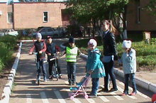 В преддверии лета, с наступлением тёплых дней каждый ребёнок стремится не только вволю набегаться, но и с удовольствием покататься на самокатах, велосипедах. Сегодня дети 12 группы повторили правила перехода проезжей части, сигналы регулировщика, правила катания на самокатах. Очень важно научить ребят правильно переходить проезжую часть: только в местах, специально для этого предназначенных, следуя сигналам светофора или регулировщика. А вот маленькие водители самокатов не только обязаны при катании не создавать помех пешеходам, но и при переходе дороги переводить транспорт, а не проезжать по пешеходному переходу. Ребята с удовольствием участвовали в тренинге, менялись ролями. Надеемся, такие познавательные занятия помогут вырастить грамотных участников дорожного движения, научат детей беречь свою жизнь, в которой должно быть еще много интересного и увлекательного!