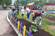 У каждой группы в детском саду есть свой участок. Каждому педагогу хочется, что бы его участок был самый красивый и не похож на другие, так чтобы дети с удовольствием гуляли, играли и занимались на нем. Погожим субботним днем на территории участка старшей группы «Кораблик» были организованы работы с участием родителей. Һәр төркемнең балалар бакчасында үз участогы бар. Һәр педагогка аның участогы иң матур һәм башкаларга охшамасын иде, чөнки балалар рәхәтләнеп йөрсен, уйнасын һәм шөгыльләнсен иде. Шимбә көнне «Кораблик» өлкән төркеме участогы территориясендә әти-әниләр катнашында эшләр оештырылды.