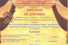 Театр спектакльләренең "Беренче театр" региональ бәйгесендә "Иң яхшы театр коллективы" номинациясендә җиңүче